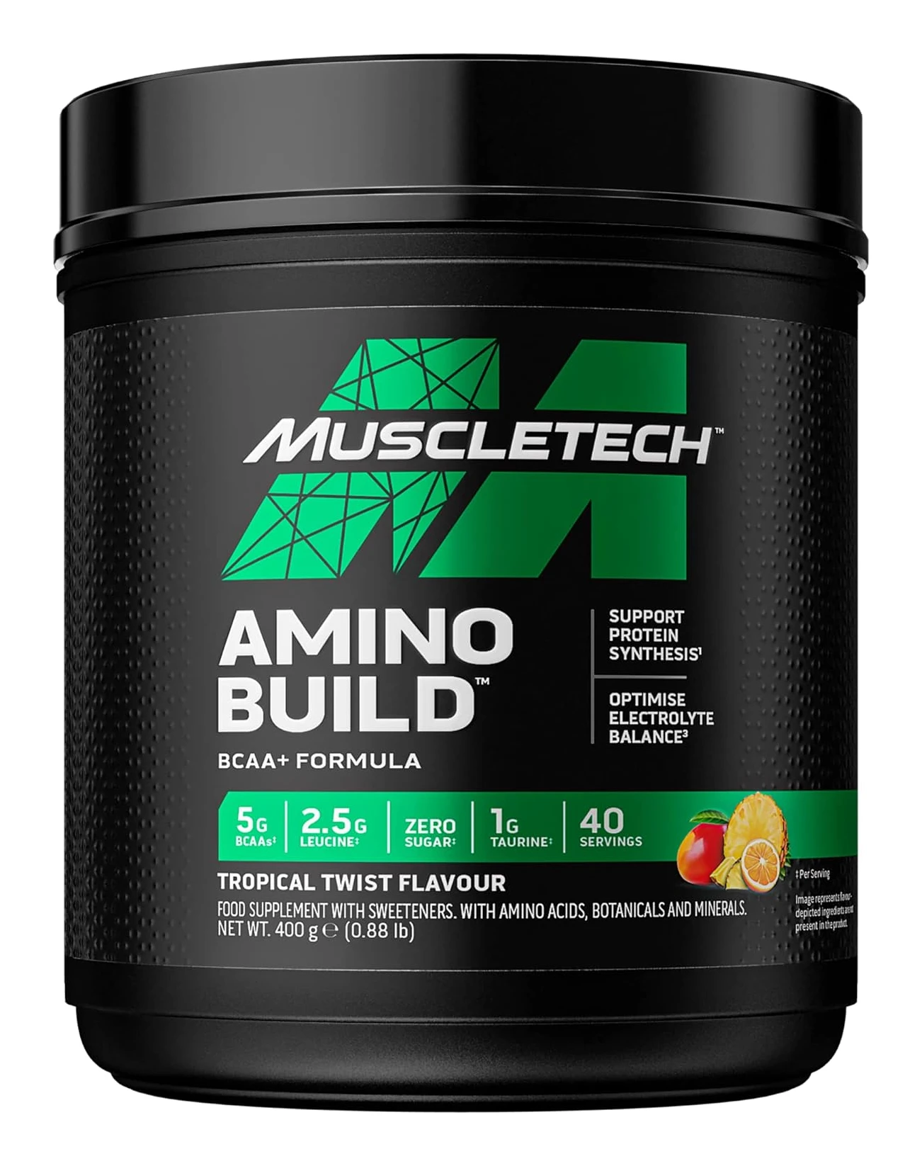 Muscletech Aminobuild offers high quality nutrients support: you train hard — and you need a BCAA amino formula that works even harder; with 5 g of BCAAs, plus 1 g of taurine, you’re getting key building blocks to support your regimen