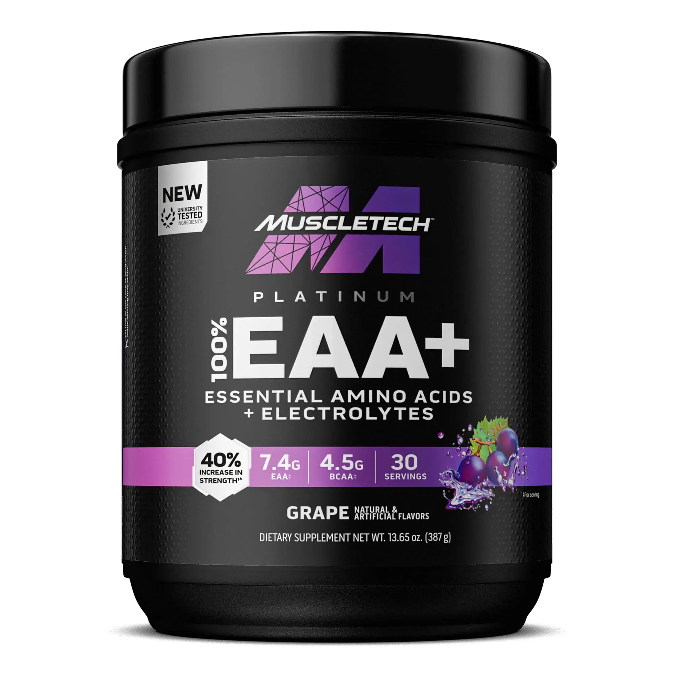 Platinum 100% EAA+ provides an optimized array of essential amino acids (EAA) to help amplify muscle strength and support protein synthesis.