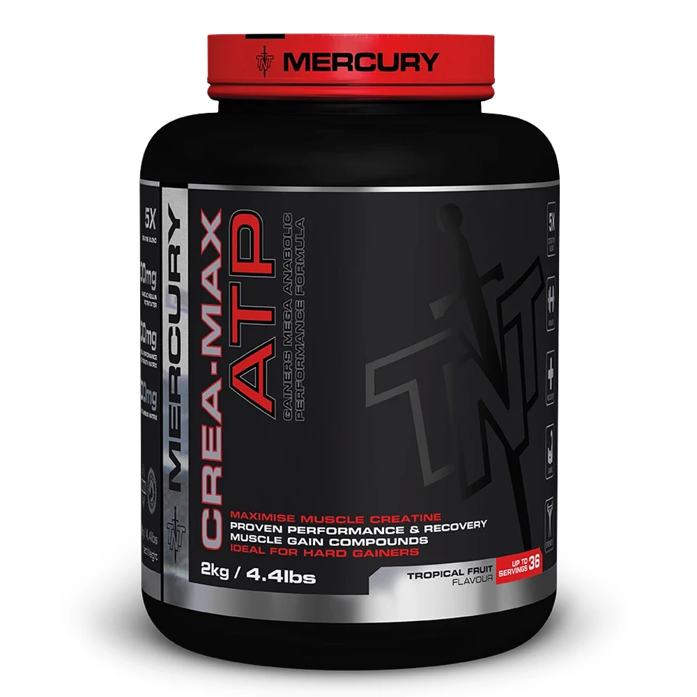TNT MERCURY CREA-MAX delivers a next generation anabolic recovery surge for hard gainers. The insulin reaction of Crea Max unlocks the muscle to allow fast, effective recovery and performance. Especially trainers who work in the 6-12 rep range will experience the benefits of the Creatine component. Along with this is the cell volumising matrix which creates a bigger, stronger and more pumped muscle reaction.